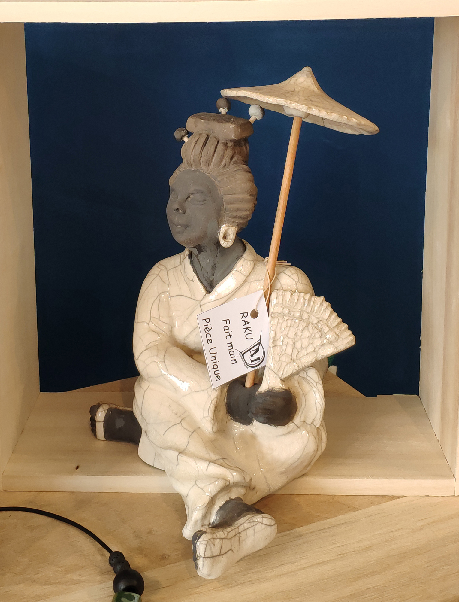 Sculptures, bijoux, fleurs et petits sujets de Noël en céramique / raku